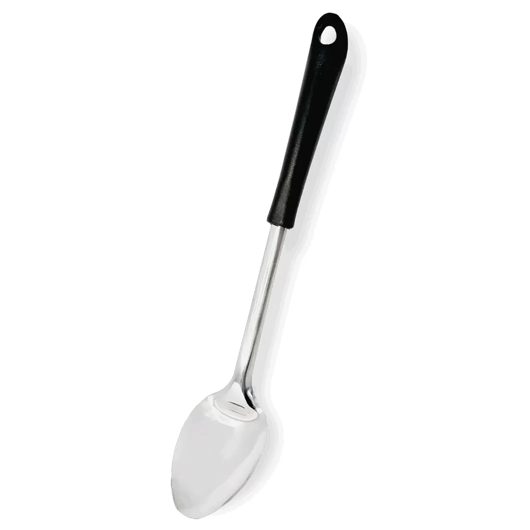 Cuchara para Arroz 100% inoxidable con mango negro.